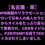 【#11】HPB掲載のリラクゼーションサロンで日本人の美人セラピストからオイルをたっぷり塗られて密着され、CKBをイジられ、PZRやSMTを経てTKKでイカされてしまいました。【名古屋・栄】