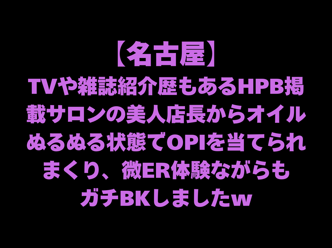 『TVや雑誌紹介歴もあるHPB掲載サロンの美人店長からオイルぬるぬる状態でOPIを当てられまくり、微ER体験ながらもガチBKした』